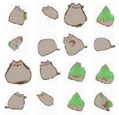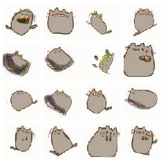 The data used to train the GAN was from various Pusheen images across the Internet. After gathering a few hundred unique scenes and poses of Pusheen, I wrote some preprocessing steps to make the background white, flip, crop, and rotate them to get many more images per original image.