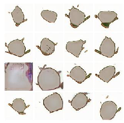 After repeating this several hundred thousand times, we should have a generator that's great at making images like the real ones we provide, and a discriminator that's left confused by the realism of both the fake and real images (if done right it should think an image is equally likely to be real or fake). Below is a video of one of the programs training, where every 250 steps I take 16 random outputs from the generator program and display them. You can see it first learns the very basics of the images, like a grey circle-ish object on a white background, and then moves on to progressively more complicated parts like ears and tails, then faces, then attempts at objects besides cats. If you pause towards the end there are even some decent looking examples!